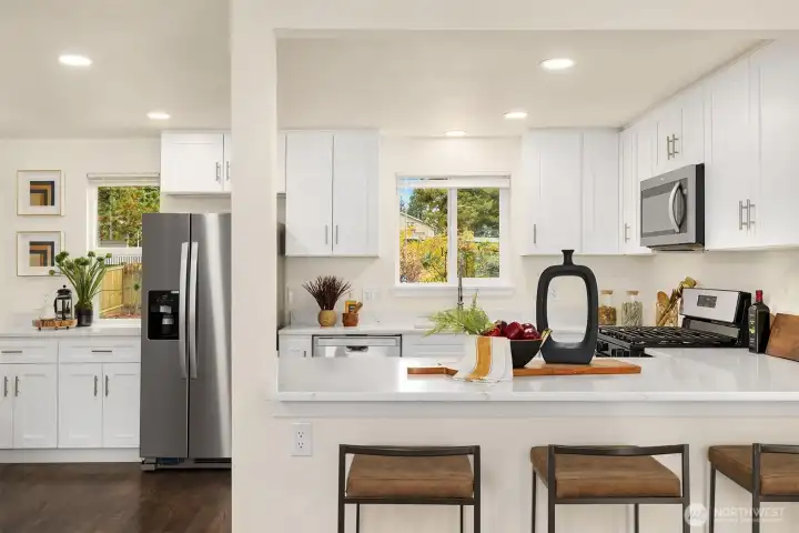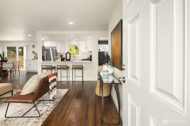 Prepare to fall in love with this freshly renovated rambler! This home blends timeless charm with modern updates. Beautifully refinished hardwood floors throughout, new interior and exterior paint, and a spacious open layout create an inviting feel. The fully reimagined kitchen features sleek cabinetry, quartz counters, stainless steel appliances, and plenty of space to store and prepare. A versatile bonus room offers space for a home office, den, or guest area. Two full bathrooms have been stylishly renovated. Sitting on a flat, sunny ¼-acre lot full of grapes, figs, and more! Plenty of room to garden, play, or expand. The two-car garage offers additional storage space. Move-in ready—ideal for first-time buyers or investors! Don't miss it!