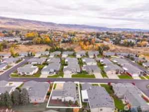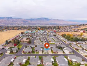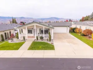 Welcome home to easy living in this beautifully maintained 1,144 sq. ft. 3-bedroom, 1.75-bath home located in a secure 55+ gated community. Vaulted ceilings and an open-flow layout create a bright, airy feel, while mature landscaping and charming front porch invite you to relax and take in views of the Wenatchee foothills. The utility room comes complete with washer, dryer, and extra storage for convenience. Enjoy friendly neighbors, top-down blinds, and a park-like setting with a clubhouse, pool, and year-round community gatherings—where comfort, connection, and peace of mind come together.