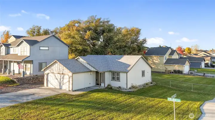 Discover this move-in ready gem perfectly positioned on a spacious corner lot with a fully fenced backyard—ideal for relaxing, playing, or entertaining. Enjoy fresh interior and exterior paint, a bright open-concept layout, and durable flooring that combine style and comfort throughout. The kitchen seamlessly connects to the dining and living areas, creating the perfect space for everyday living and gatherings. Step outside through the sliding door to a patio overlooking the generous yard, complete with an underground sprinkler system for easy maintenance. Conveniently located near schools, shopping, and parks, this home beautifully blends comfort, convenience, and curb appeal. Call and schedule your showing today!