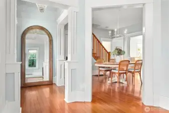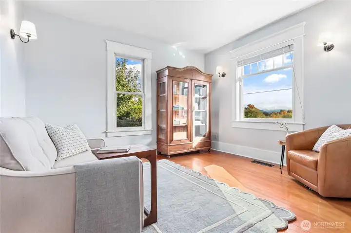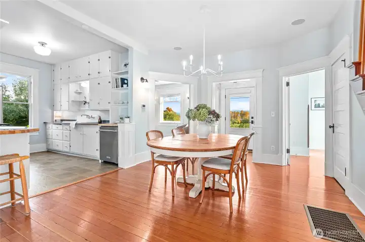 A true Lynden treasure! This historic home blends timeless charm with modern comfort. Original fir floors, ornate doors, trim, and hardware showcase craftsmanship rarely seen today. Enjoy a timeless farmhouse sink, updated baths, a spacious addition, and an unfinished basement for your vision. The large lot offers gorgeous gardens, a covered gazebo, fire pit, and sweeping valley and Mt. Baker views. Feels private and quiet, perfect for strolling into town or watching animals graze below—a home where history and heart meet.
