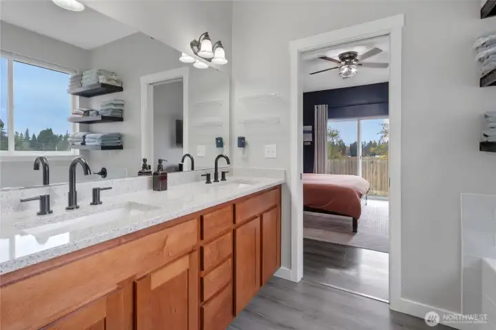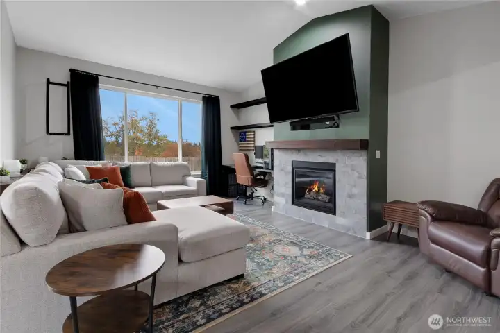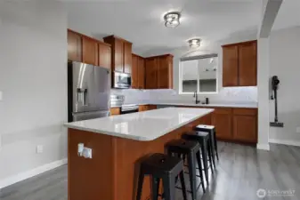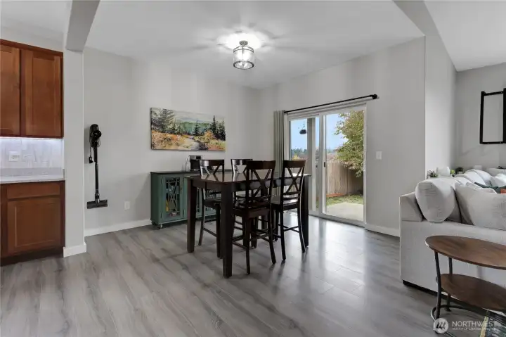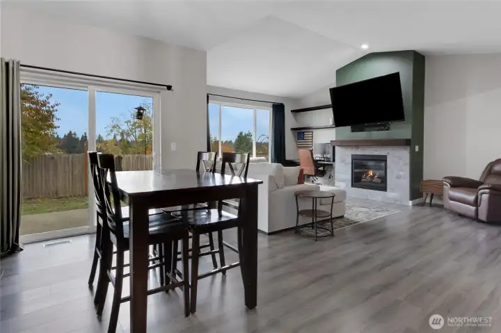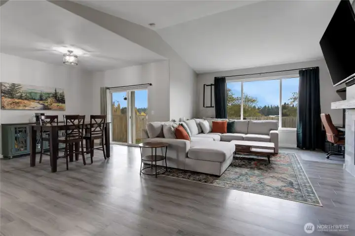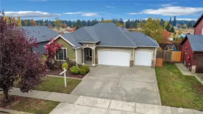 Stunning updated rambler featuring a spacious great room w/vaulted ceilings. Updated kitchen boasts oversized island perfect for entertaining. Primary suite offers true relaxation with backyard access, 5-piece ensuite bathroom. Newer interior paint, flooring, quartz counters, sinks/faucets, lighting, tile backsplash & ceiling fans throughout give this home a crisp, move-in-ready feel. Enjoy year-round comfort with A/C & unwind outdoors on the private patio. The spacious 3-car garage provides plenty of parking, storage & convenience. Modern finishes, thoughtful upgrades, & one-level living at its best. Close to schools, shopping, parks, and JBLM. This home combines comfort, style, & functionality!