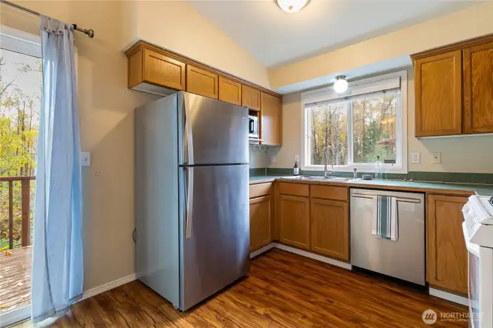 Discover this stunning single-level home, nestled in a serene neighborhood close to everything in Bellingham. With vaulted ceilings and an open floor plan, that makes it feel spacious and inviting. The home backs onto lush green space which you can enjoy from the beautiful deck, offering both privacy and a peaceful atmosphere. Recent updates include a brand-new roof, plush new carpeting, and fresh interior paint, making this home truly move-in ready. Conveniently located mintues from I-5, Bellis Fair Mall, and the vibrant Barkley area, you don't want to miss out on this home!