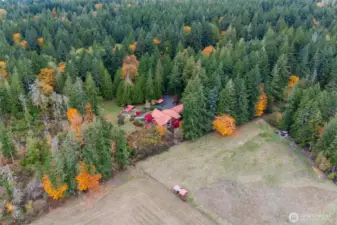 Meander through towering firs and cedars to this breathtaking 2,903+/- sq ft log lodge on 5+/- private acres off Johnson Point, showcasing a majestic Mt. Rainier view. Enjoy the feeling of living in the wilderness while still being close to town. The expansive great room pairs beautifully with a huge chef’s kitchen, ideal for entertaining. A split-bedroom plan ensures privacy, while outdoors offers multiple decks, two firepits, a charming cabin perfect for guests or crafting, and open fields for livestock. Durable metal roof, propane or wood-powered radiant heat, and an oversized 3-car garage complete this rare retreat blending seclusion with modern convenience.