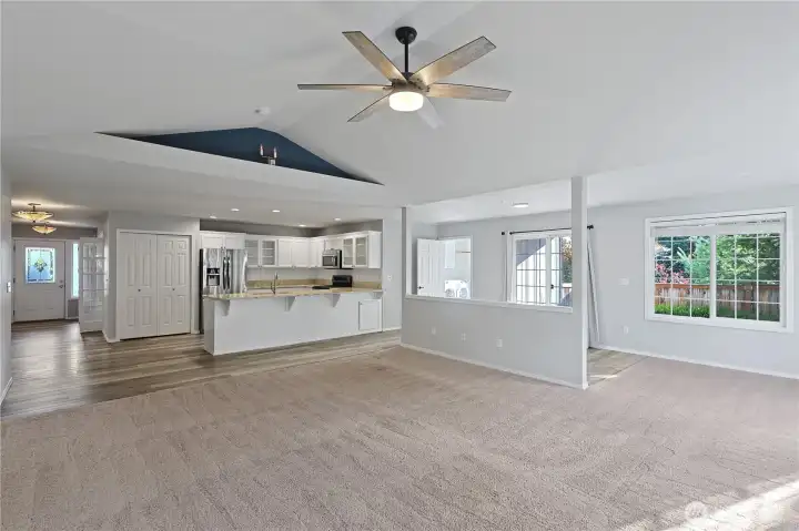 Find your peaceful retreat in the gated Gem Place community. This 3 bed, 2 bath rambler is designed for easy, single level living and is filled with natural light. Open floor plan, featuring a living room with vaulted ceilings and gas fireplace. The kitchen has granite counters, stainless steel appliances, large pantry, and breakfast bar near dining area. A slider leads directly to the covered patio and fully fenced backyard. Primary suite is complete with a 5 piece bathroom featuring a walk-in tile shower and a large walk-in closet. Office with French doors provides the perfect work-from-home space., This well cared for home sits on a quiet street and includes 2 car garage with built in storage and gas heater.