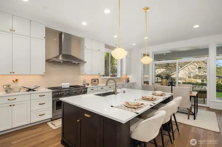 The sought after Aurora plan from Murray Franklyn in the quiet Tamarack Lane neighborhood. Convenient location near the Microsoft campuses and Marymoor Park with easy freeway and Link Light Rail access. Stunning open floor plan that features a flowing kitchen and family room with a stunning two story ceiling and windows. 5 bedrooms including main floor guest suite and den, plus upstairs recreation room with wet bar. Room for all your activities. Spectacular kitchen featuring top of the line appliances including Thermador range, huge quartz island plus amazing butler's pantry. Oversized covered patio with outdoor fireplace for year around relaxing. Award winning Lake Washington schools.
