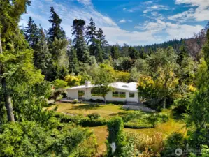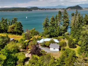 Welcome to a pocket of peace on North Whidbey. This main level living mid-century home features vaulted tongue & groove ceilings, exposed beams, warm original wood paneling & ample natural lighting, sweeping views, endless garden space, detached garage/shop, AND privacy situated on just shy of an acre. Look to Skagit Bay, Mount Baker, Ika Island and Goat Island from your future home with 3 beds + 2 baths. Generous living space w easy outdoor access to deck space. Private yard has been wonderfully maintained w mature landscaping, raised fruit & vegetable garden beds. Wind through the garden & feel the magic of this property. Very desirable corner of Whidbey Island w groceries, beach access, trail access, Cornet Bay, Deception Pass close by.