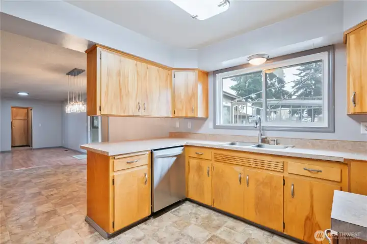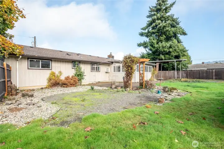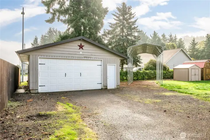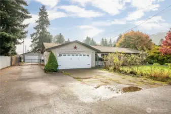 Great home, good location, and ready for your touch! This spacious 1,642 sq ft home includes an attached 2 car garage. Inside, you have a nice-sized primary bedroom with an en-suite bathroom. It has 3 total bedrooms and 1.5 baths. The living room is large and welcoming, and the family room has a pellet stove. Equipped with a large covered patio that is enclosed. On a half-acre lot, the property features nice landscaping, raised garden beds, and a fenced yard. A big bonus is the 2 car shop and carports tucked in behind the house. Plenty of parking space on the driveway for a RV and a boat. Call for a showing before it's gone.