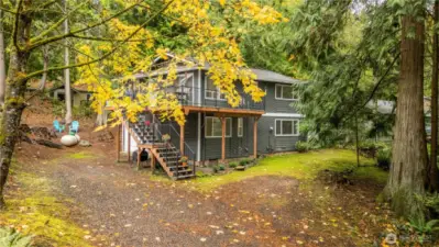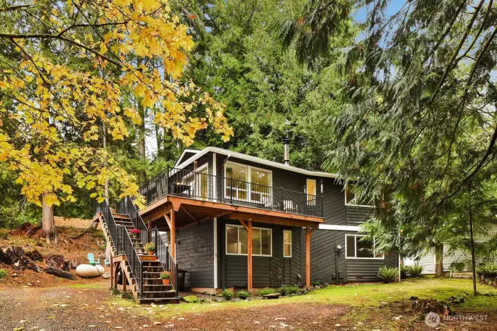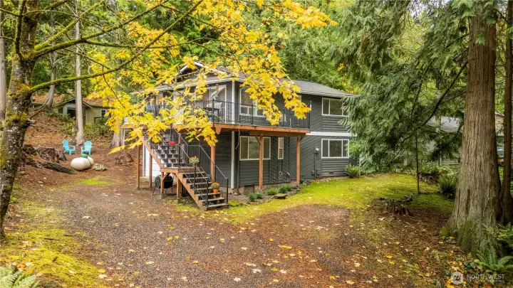 Just off of Sudden Valley Drive in Gate 13, welcome home to a neatly updated two-story home on a quiet street, with a level driveway and large wraparound deck. Living area features multiple large windows to let in all the light. Main level includes kitchen and living room, two bedrooms, and full bathroom. Downstairs includes family room, office/workout space, laundry, bedroom + ensuite bath and walk-in closet. Roof and deck are both just 3 years old, and main floor bathroom has been recently updated. Small garden area outside. Easy access to Strawberry Falls Trail and Stimpson Family Nature Preserve, plus SV amenities - sport courts, beaches, marina, golf course, and more!