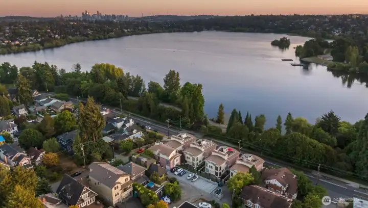 Want a breathtaking front row seat to the changing seasons? Live here and walk Green Lake or to restaurants, shopping and more! This spacious 1,487 sqft condo, lives bigger due to the flow of space and the ample closets (with built-ins!), laundry and 2 bed/1.75 bath on the second floor. And the roof-top deck serves as a lake-view bonus living room. Easy commute and steps from Green Lake, you get serenity, sophistication, walkability, and convenience. These properties rarely come on the market and the 14-unit building is well-run by a collaborative/experienced HOA. No pet restrictions, covered parking, garden space and incredible light on every floor. Seller is motivated! Add your touches and make this your very own.