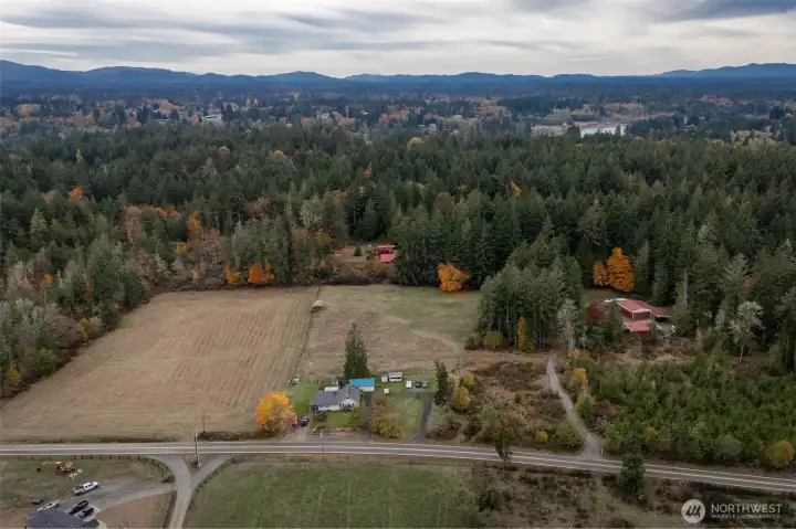 Discover an extraordinary two-parcel, 13-acre sanctuary nestled beneath towering evergreens with commanding Mt. Rainier views. This 2,903± sq ft custom log lodge offers a dramatic great room with soaring ceilings and a grand chef’s kitchen designed for gatherings. A thoughtful split-bedroom layout provides serene privacy. Outdoor living shines with expansive decks, two firepits, open pastures, and a charming guest or studio cabin. A 24x36 shop, 12x40 machine shed, and irrigation well elevate functionality. Metal roof, radiant heat (propane/wood), and an oversized 3-car garage complete this refined retreat of rare peace and timeless Northwest beauty.