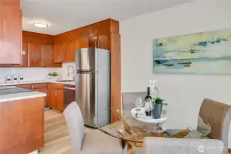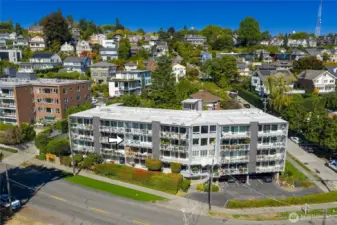Views Location Views!!! Life is beautiful in this stunning, spacious, gorgeous South facing unit on Queen Anne’s coveted South slope. Naturally bright w/ South & West exposure, abundant light streams in from the numerous windows, which look out to a panoramic "living" view of The Space Needle, downtown, Elliott Bay, Mt Rainier & more! Classic updates throughout w/ gorgeous LVP flooring underfoot, make this open floor plan shine! The beautiful open kitchen, 2 large bedrooms w/ fabulous closets, 1.5 baths & an in-unit W/D hookup is superb. An 86 Walkscore finds you only moments from parks, restaurants, cafes, easy transit to SLU & Downtown Seattle. HOD’s include prop taxes, W/S/G, cable & more. $5,000 Buyer credit for Dues & pet friendly.