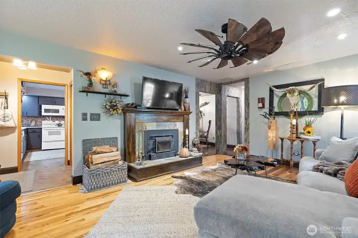 Discover this beautifully maintained single level home on a dead end street in the NW Lincoln neighborhood. Inside, you'll enjoy a warm and welcoming atmosphere featuring two fireplaces- one in the open concept kitchen and dining area, and another in the cozy family room. A large picture window fills the room with natural light and offers serene views of the lush front yard. The kitchen is ideal for entertaining, with a well designed layout that flows effortlessly to the spacious, fully fenced backyard. The primary bedroom overlooks the peaceful backyard which showcases mature landscaping, a sprinkler system, fruit trees, large patio, and relaxing hot tub. With a heat pump and forced air system.