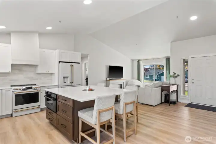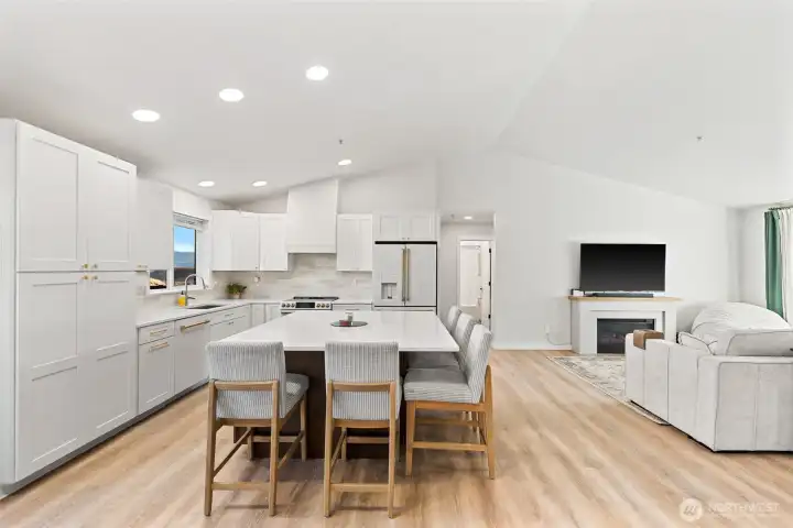 Welcome to this dreamy 3 bedroom, 2 bath home that sparkles and shines like you won't believe. Enjoy the beautiful transformation of the open living, kitchen and dining area. The super-size island/eating bar area hosts quartz counters, new cabinetry, LVP flooring and the highly sought-after white and gold CAFE appliance package. The dining opens to a spacious deck perfect for entertaining and BBQ's. The backyard is fenced with mountain views, a storage shed and RV parking. The perfect package inside and out is ready for your move-in!