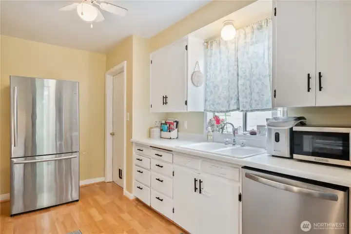 Super cute home, just a couple blocks from the Lake! 2 Beds with a Bathroom downstairs, and upstairs is another Bedroom, 1/2 Bath and Landing (for your Peleton and your work-from-home desk). There's a dedicated space for the dining room in front of the big picture window. The home stays warm and cool thanks to the ductless heat pump. The single garage is good for your car or lots of storage (you can literally stand up on the plywood-floored Garage attic!) ... and it's great to have driveway parking! Bonus area out back (deck, backyard, Shed, attached carport) has a cyclone fence lined with cedar fencing (it's total privacy for playing or relaxing!) Hurry and get in before Christmas; there's a great window waiting for your Tree!