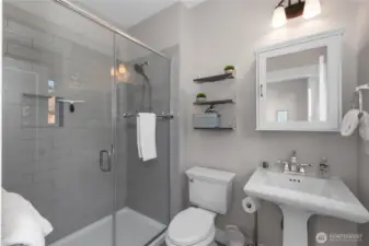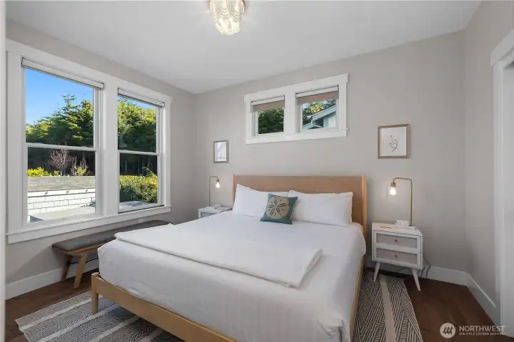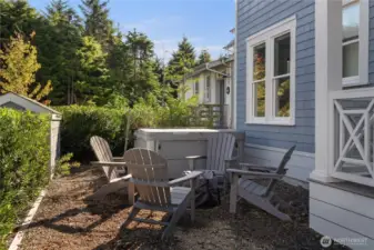 Welcome to Dogwood Cottage, a serene, fully furnished retreat named after the native Pacific Northwest Dogwood tree. Nestled in one of Seabrookâs most peaceful neighborhoods, this home invites relaxation on its sunny, south-facing porch with Polywood rocking chairs, an outdoor dining table, and views of a wooded ravine with ocean sounds. The backyard features Adirondack chairs by a Solo Stove and a private hot tub. Inside, soothing blues and greens extend the natural beauty indoors. The ground floor has a bedroom with a walk-in shower. Upstairs, find two more bedrooms, media room, and desks for remote work, plus two expansive owner's storage areas. Dogwood Cottage is a short walk from the outdoor pool, gym, and Fernwood neighborhood.
