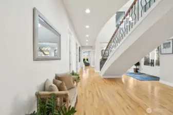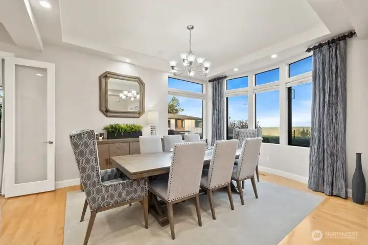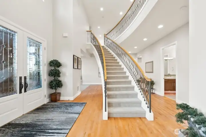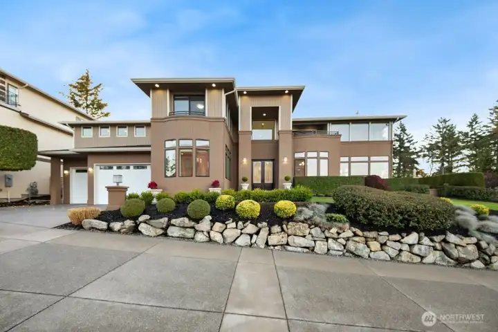 Experience craftsmanship and comfort in this custom-built Classic Concepts home, where elegance meets everyday living. The grand entry opens to a stunning floating staircase and open dining area. With tall ceilings and three living areas, this home offers space for entertaining, relaxing, or working from home in the large dedicated office. Recent upgrades include beautifully resealed hardwood floors, a modern kitchen with new backsplash, countertops, and appliances, plus designer pet-friendly carpet. Enjoy breathtaking views of Seattle, Bellevue, and Lake WA, all from a meticulously maintained home just up the hill from the VMAC. Every detail — from the generator wiring to the hot/cold garage spigot — speaks to quality throughout.