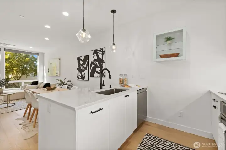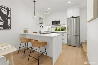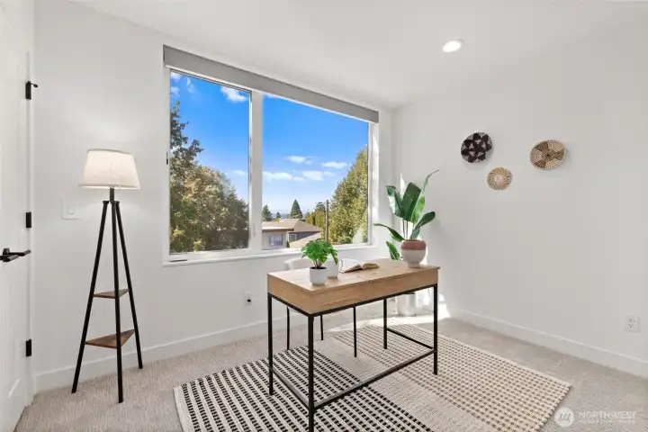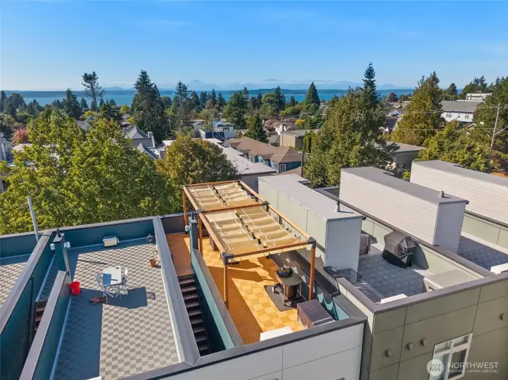 Where Distinction Meets Design in the Heart of West Seattle. A home that stands apart from the ordinary, this single-family residence has no HOA dues, offering 3 bedrooms, soaring ceilings, and walls of natural light. The thoughtful floor plan includes a flex space on the main-level with a dedicated shower, an open-concept great room and gourmet kitchen, plus a primary suite and 3rd BR/office with shower on the upper level. Contemporary upgrades include motorized shades, efficient AC units, and a Level 2 EV charger. Crown your evenings on the rooftop deck with sweeping vistas of the Sound and the Olympics, paired with unparalleled walkability to California Ave's most sought-after amenities. Pre-inspected and move-in ready. Truly noteworthy.