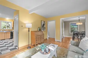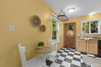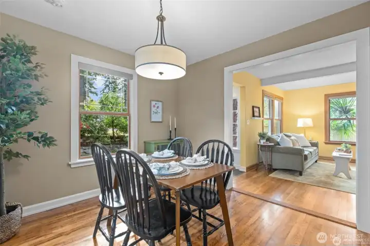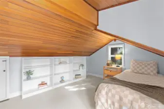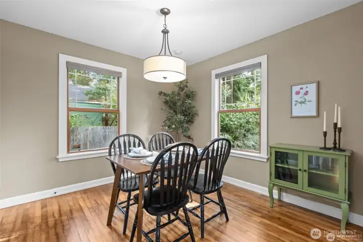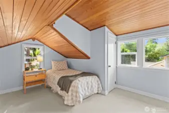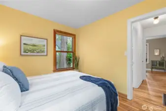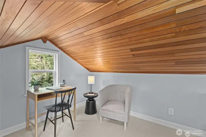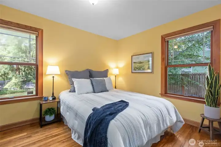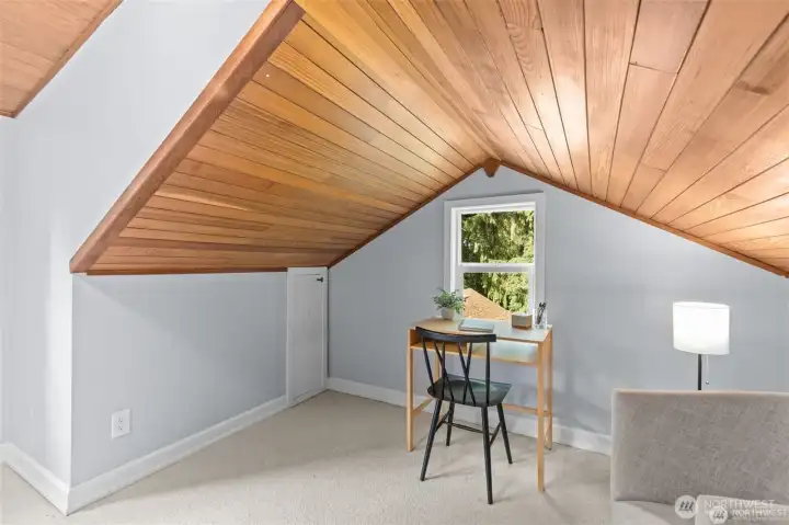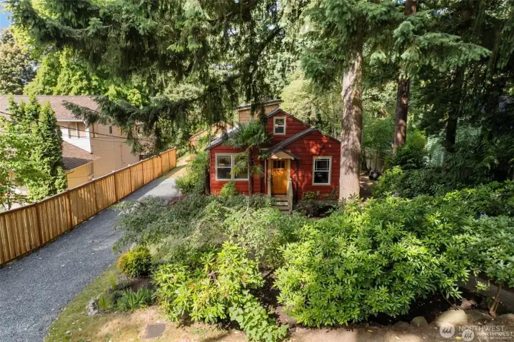 Charming fairytale craftsman in Olympic Hills! Welcome to your in-city oasis. Freshly painted in and out, new A/C + furnace, gutters + newer metal roof. Gleaming hardwoods throughout the main, eat-in kitchen with a separate dining room off the living room and a main floor bedroom/bath. A fully finished basement with newer carpet is easily used as a family room or primary suite with a private bath. Upstairs a quaint lofted bedroom with bright territorial views & a quiet reading nook/WFH space. Off the kitchen, a huge fenced backyard awaits and a deck waiting for you to entertain. The garage/outbuilding has electric power and is ready for your finishing touches! ADU, GYM, home office, shop...the possibilities are endless! Welcome home.