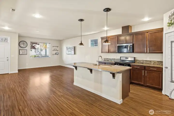 Welcome to this contemporary home in the gated community of Emerald Pointe! Located in the coveted area of Sunrise, parks, walking trails, and mountain views surround you! With 4 bedrooms plus an office and a spacious upstairs bonus room, there’s room for everyone. The open kitchen features granite counters, stainless appliances, gas cooktop, and walk-in pantry. Just off the kitchen, you'll also find a formal dining room and designated home office. Venture upstairs to find the 4 large bedrooms, 2 full baths & bonus room. The primary suite offers a relaxing soaker tub & walk-in closet. Enjoy brand-new carpet, fresh laminate flooring, central A/C, & a covered patio for year-round gatherings. This one is a must-see!