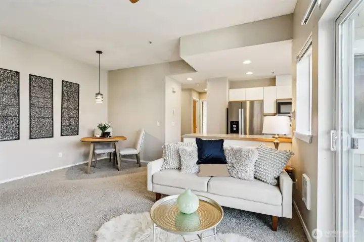 Welcome to Harbor Reach - an exceptional condominium complex at The Lakes. Enjoy a spacious Kitchen w/open living space, designated Dining area, Primary Bed with a large custom California Closet. All appliances stay. Enjoy a cozy wood-burning fireplace, private patio, attached individual garage with extra storage space w/built-in shelving, and nearby visitors' parking. Recently updated with fresh interior paint and new windows. The community features a clubhouse with a kitchen and gathering area, exercise room, hot tub, and sauna. Great location close to Kent Station, Riverbend Golf Complex, and the ShoWare Center. This is a must-see condo!!