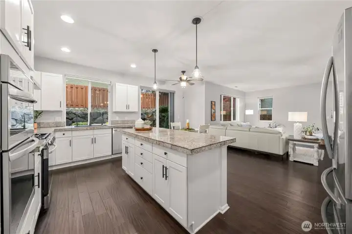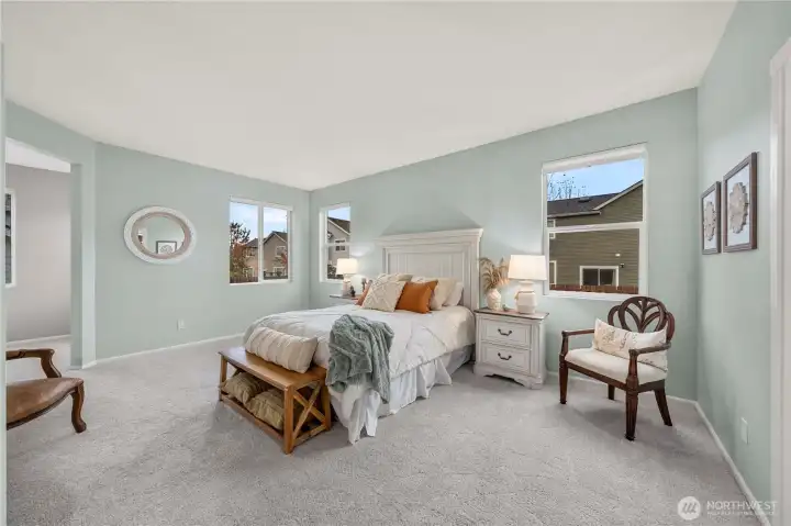 Welcome to this beautifully updated 4-bedroom, bonus room, 2.75-bath home in the desirable gated Montevista community of Lakeland Hills. Light and bright throughout, this home features vaulted ceilings in the living room, a spacious dining area, and an updated kitchen with a large island that opens to the family room. The 3-car garage includes one bay converted into a hair salon, easily reverted if desired. Enjoy nearby community parks, walking paths, and a convenient location within walking distance to Lakeland Hills Elementary, local shopping, dining, and the park-and-ride. Located minutes to Lake Tapps County Park. A must see!