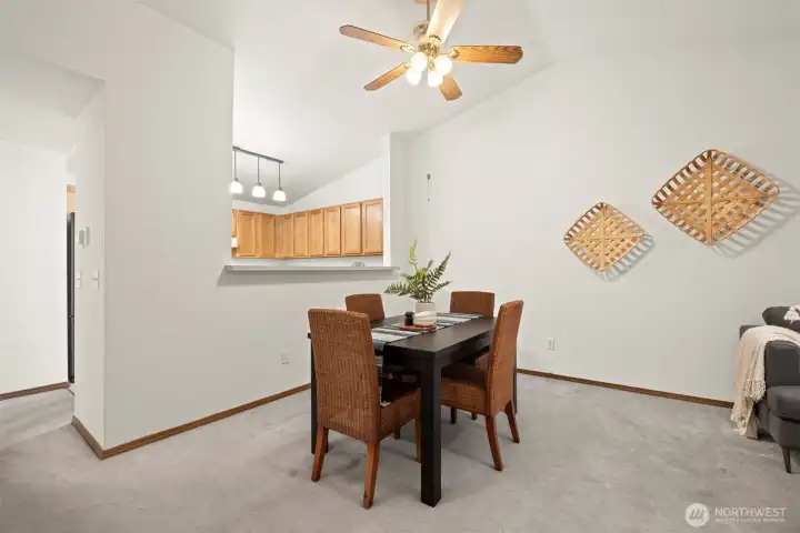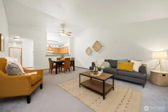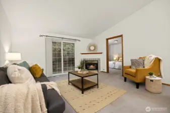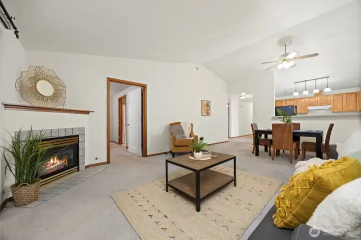 Move-in ready single-level condo ideally located in the heart of Mount Vernon. This well-maintained 2 bedroom, 1.75 bath home offers vaulted ceilings, an open-concept living space, and great natural light throughout. The kitchen features ample counter space & cabinetry, opening to a cozy dining area & living room with direct access to a private patio, perfect for morning coffee or evening relaxation. Enjoy a spacious primary suite with an attached bath, plus a second bedroom ideal for guests or an office. Attached one-car garage provides secure parking and extra storage. HOA covers exterior maintenance, water, sewer, garbage, pest and pest control for easy living. Conveniently close to shopping, dining, parks, and quick I-5 access.