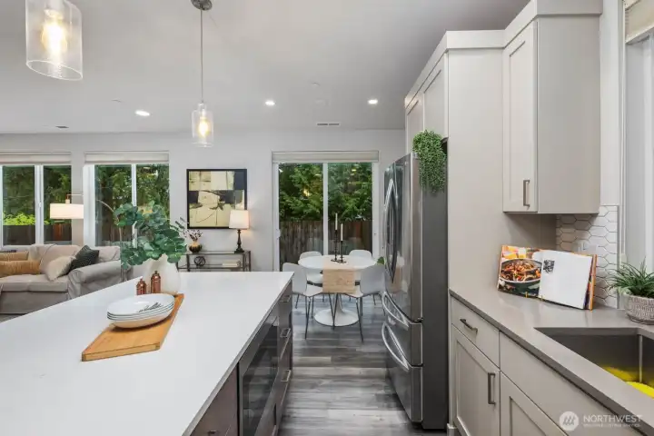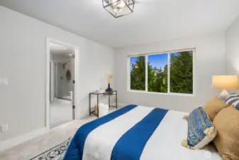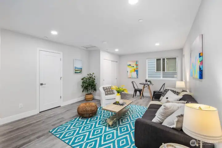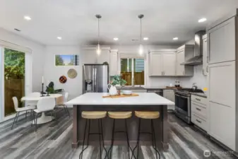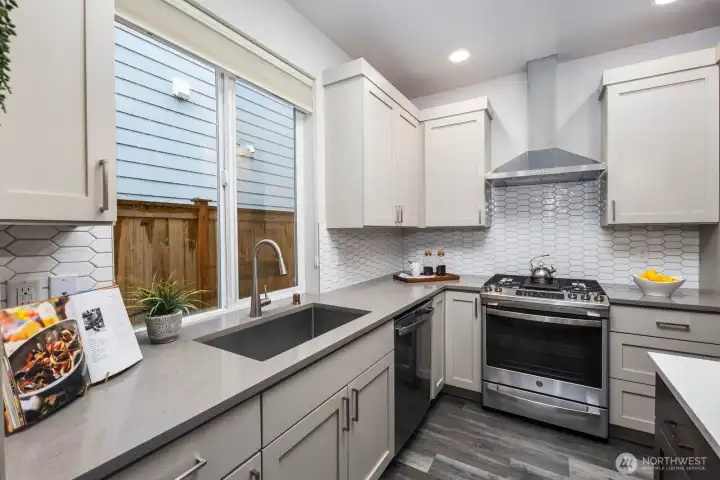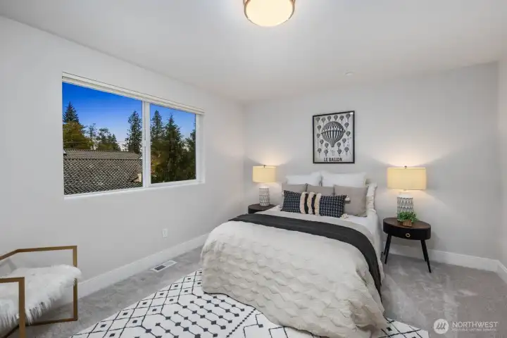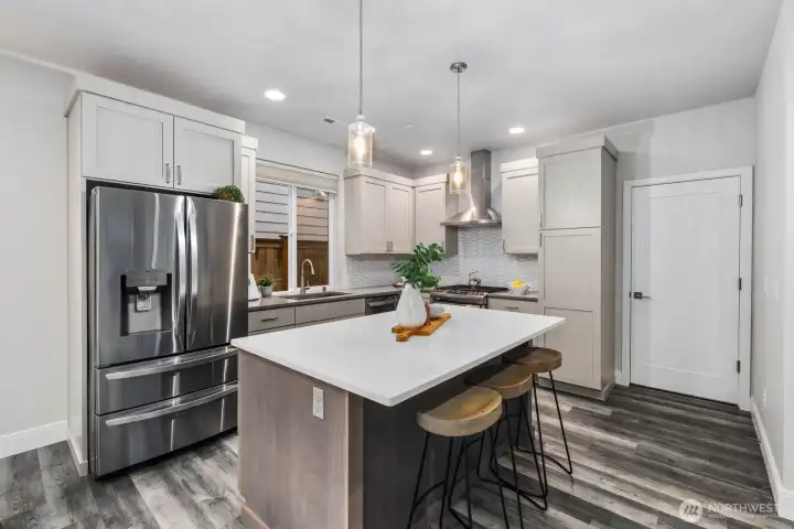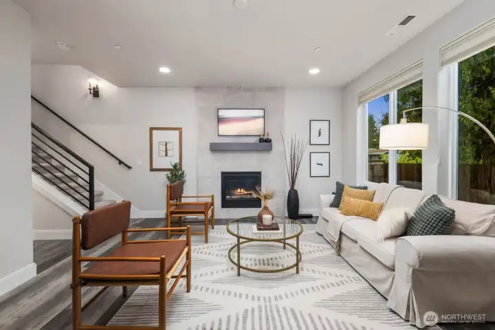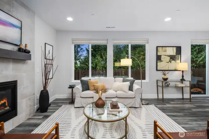 Tucked away on a quiet dead end street, this 2021 NW Contemporary by a local luxury builder feels like new. The main level has a bright, open layout featuring a cozy gas fireplace, dining area, & gourmet kitchen w/ high-end appliances, pantry, & an eat-in island. Upstairs, the primary suite offers a walk-in closet & soaking tub, joined by two oversized bedrooms & laundry room. The top floor adds a guest suite & spacious rec room (or optional 5th bedroom)—perfect for media, play, or hobbies. Outside, find a fully fenced yard within a well-kept community where the HOA maintains lawns, roads, & the park. With ample guest parking, a new elementary next door, & pedestrian friendly streets, this home is a perfect blend of community & convenience.