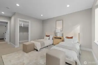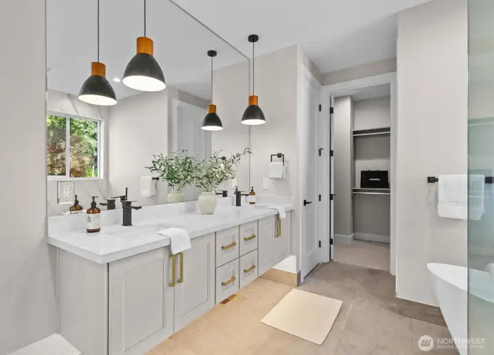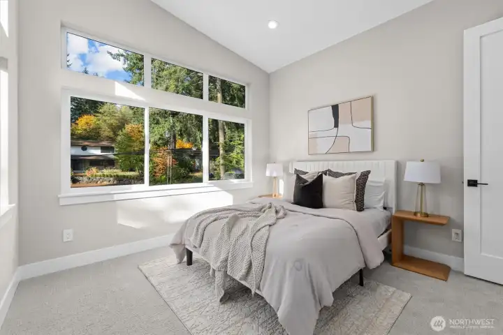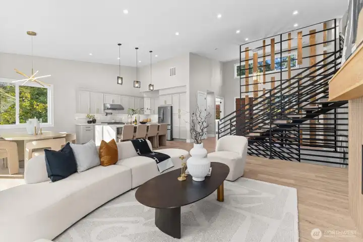 **4.375% SELLER PAID 2/1 Buydown** Premium builder presents a new luxurious 5 bedroom/4.5 bath, 3627 sqft home, blocks from thriving Downtown Bothell. An open & elegant floor plan designed around a floating steel staircase, complimented by dramatic sloped ceilings and a main-level Primary suite. Downstairs provides a spacious family room which separates a private guest suite from an additional bedroom and full bath. The custom staircase leads to the upper level with 2 bright bedrooms paired with another full bath. A stunning new build with quality finishes & elevated architectural details throughout, providing a rare statement home in the heart of Bothell! No HOA + RV Parking.