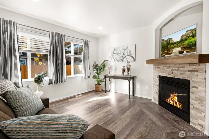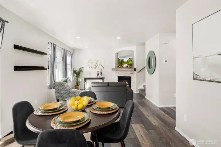 Move-in ready townhome w/upgrades! This 3-bed, 2.5-bath gem features a gorgeous kitchen w/stainless appliances that stay & new tile backsplash that opens to the dining nook & great room w/cozy gas fireplace & custom mantle. Enjoy year-round comfort w/the new heat pump & AC system! Well-maintained home w/quality flooring, carpet, interior paint & stainless appliances. Smart layout includes spacious primary suite w/walk-in closet PLUS convenient upstairs laundry. Relax in your private fenced backyard w/territorial views. End-unit location offers extra privacy. Minutes to I-5, shopping, dining, coffee & park-&-ride. Appliances stay, including fridge & washer/Dryer! Roomy 2 car garage! This Arlington beauty won't last—schedule your showing now!