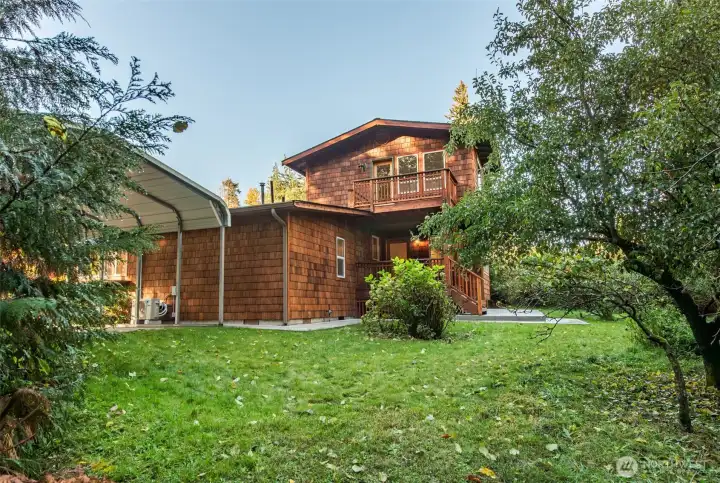 Welcome to this beautifully remodeled 2-bedroom, 2.5-bath home on 1 acre! With dual primary suites, one on the lower level and another upstairs with a private deck, the layout offers great flexibility for guests or multi-generational living. This 2,016 sqft home has been thoughtfully updated and includes a spacious sunroom filled with natural light. Remodeled in 2025 with a new roof and refreshed finishes throughout, it’s move-in ready and easy to love. Outside, you’ll find fruit trees and plenty of space for gardening or outdoor projects. A two-car carport provides covered parking and the location offers quick, convenient access to the highway while still feeling private and peaceful.