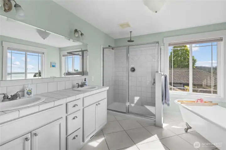 First time on the market, this custom 5-bedroom, 4-bath farmhouse offers a rare blend of luxury and location on a landscaped, level ?-acre lot on coveted Tahoma Place West. Enjoy sweeping views of Puget Sound, snow-capped Olympic Mountains, and Fox Island, with soaring eagles and breaching orcas as your backdrop. The great room features Australian Cypress hardwood floors, perfect for entertaining, while the finished lower level offers a spacious entertainment area, wet-bar, hobby/sewing room, gym, wine chiller, and walk-in cooler. Step outside to a spacious patio complete with putting green. The detached 3-car garage includes a bay outfitted as a professional-grade office. Walk to UP Town Center, Curtis High School, and Chambers Bay.