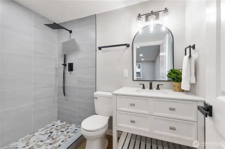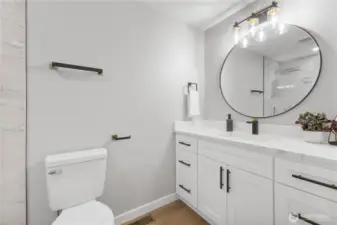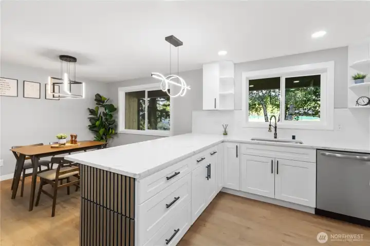 Welcome to this beautifully updated 3-bedroom, 3-bath with bonus room home on a private dead-end road. The open floor plan features a spacious living room perfect for relaxing or entertaining, while the formal dining area flows seamlessly into the kitchen—complete with shaker-style cabinets, quartz countertops, and stainless steel appliances. Durable waterproof flooring runs throughout. Two primary bedrooms provide serene retreats with private en-suite baths, and the second primary bedroom opens to the backyard. Outside, enjoy a fully fenced yard ideal for pets or play, plus ample parking with RV space and a finished 2-car garage with side gate access. Conveniently located near shopping, Hwy 512, and I-5, this move-in-ready gem