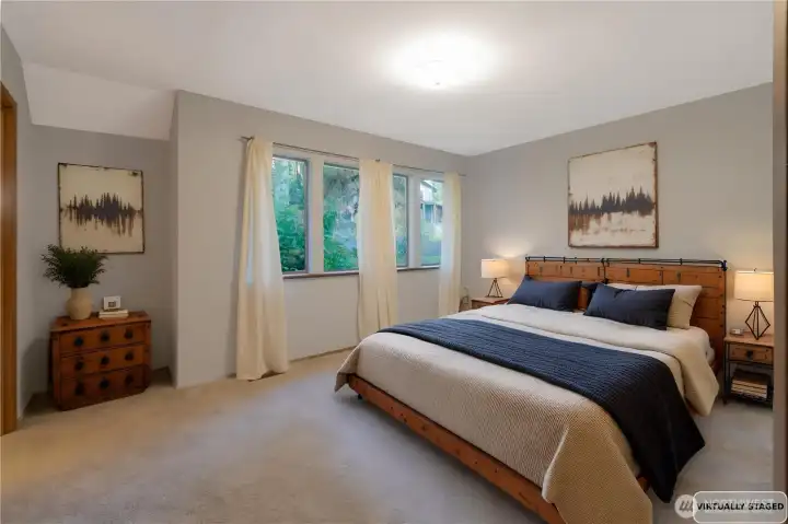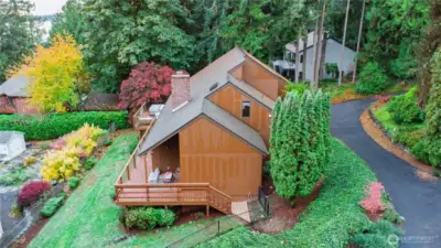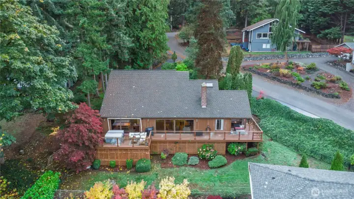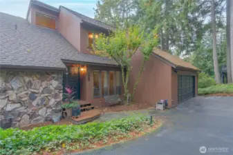 Exquisite NW Contemporary w/Sound Views & Sunrise Serenity! Dramatic vaulted ceilings, skylights & open design drench this Illahee gem w/natural light. Flagstone entry & stylish light fixtures set a tone of elegance. Chef kitchen features state-of-the-art appliances, granite, & easy access to roomy dining area! East-facing primary suite offers custom closet organizers, glass and tile shower & access to covered Trex view deck w/hot tub—perfect for a morning soak or whale watching! Two add’l bedrooms, full bath & bonus theater room upstairs. Plush carpet, stylish flooring, 50-yr roof & refreshed baths. Dramatic landscape lighting set amongst formal plantings. Two-car garage w/car chargers. Under 5mi from Brem ferry takes 11 minutes!