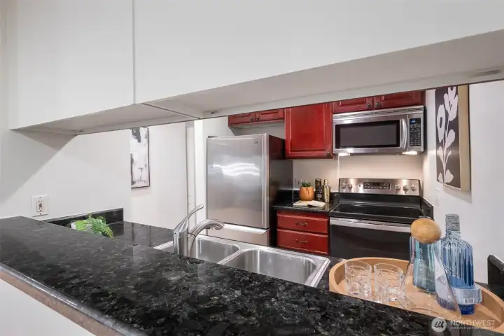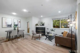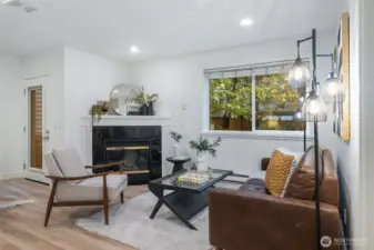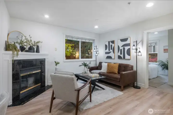 Discover refined urban living in the heart of Capitol Hill. This light-filled corner unit offers a rare combination of privacy, comfort, and style. Inside, a cozy gas fireplace anchors the open living space, while two generously sized bedrooms provide the perfect retreat for rest & relaxation. Modern kitchen features bar seating, sleek cabinetry, and stainless steel appliances. Step outside to your expansive private patio with lush yard space, perfect for morning coffee, gardening, or evening gatherings. Enjoy the convenience of secured garage parking, plus effortless access to I-5, renowned restaurants, boutique shops, parks, and the Capitol Hill lightrail station. Every detail invites you to embrace a lifestyle of sophistication and ease.