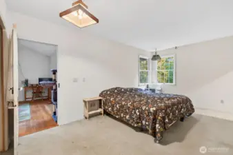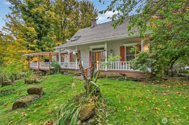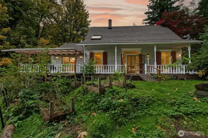Own a piece of local history with this home. Thoughtfully expanded over the years to blend timeless charm with comfort. Enter and you step into the past with soaring vaulted ceiling, refinished original old growth floors, stunning fireplace, dramatic windows, and a handcrafted staircase leading to a cozy loft bedroom. The main level offers 2 comfortable bedrooms and 2 full baths, along with family room and galley kitchen, perfect for both everyday living and entertaining. Set on approximately 11 private acres, this property is a true retreat. Relax on the porch, take in the natural beauty, tend to your garden, pick fresh fruit from the trees. Whether you're looking for tranquility, comfort or privacy, this home has it all.
