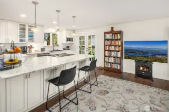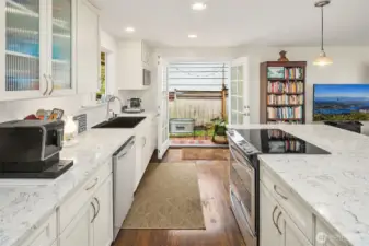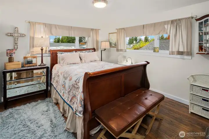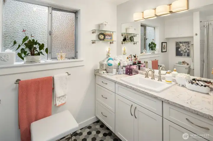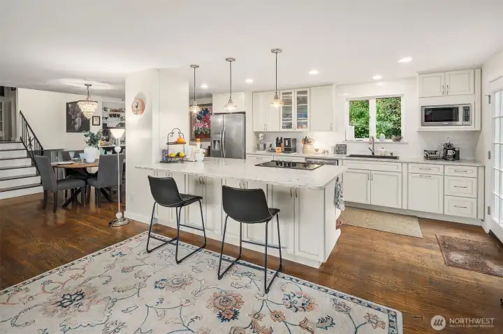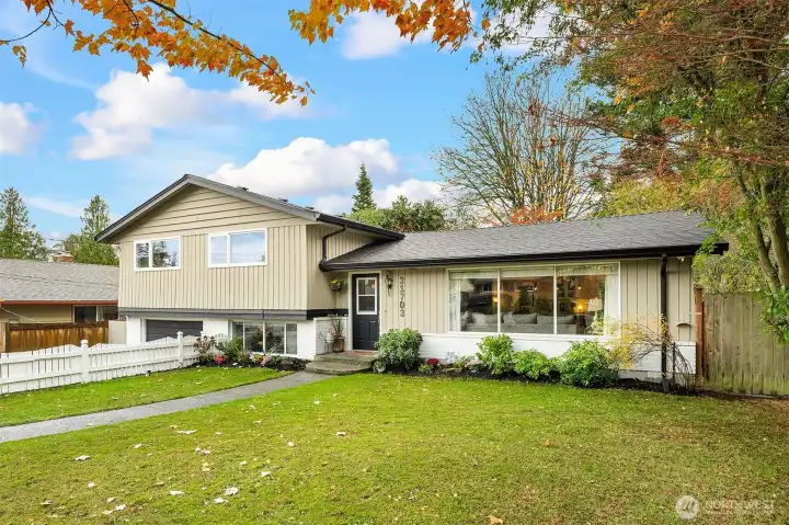 Framed by a classic white picket fence near Yost Park, this mid-century tri-level blends modern updates with effortless Edmonds living. The chef’s kitchen impresses with slabs of granite, sleek cabinetry, and generous prep space—bright, functional, and open to the great room. Thoughtful built-ins add warmth and style, from the dining room display to the California Closets. French doors off kitchen spill out to a sun-drenched brick patio and a huge backyard prime for entertaining. Three bedrooms and an updated full bath upstairs, while the mid-level features a flexible bonus room with a private hot tub and sauna. Lower level adds a potential 4th bedroom and ¾ bath. Nearly 2,000 sq.ft. on an 8,276 sq.ft. lot—style, comfort, and pure serenity.
