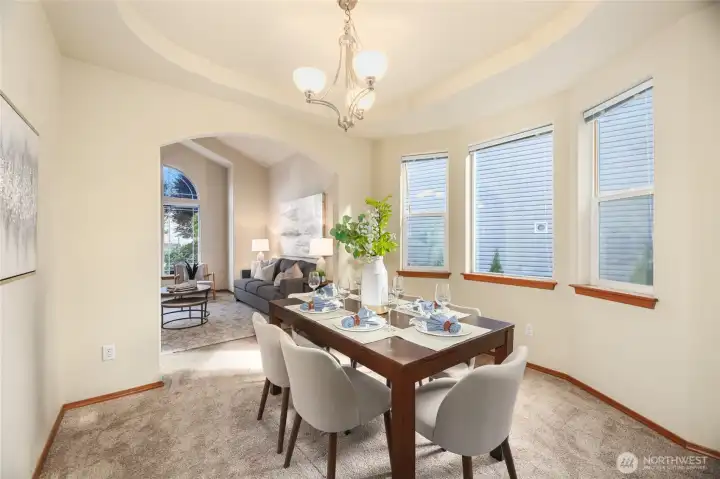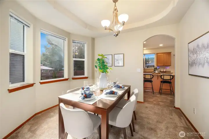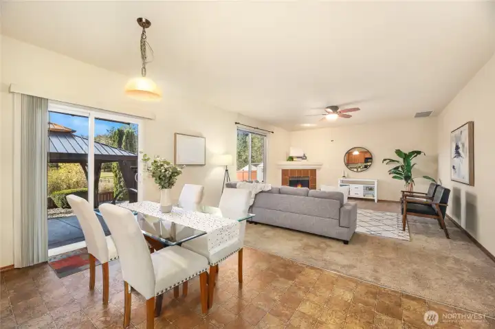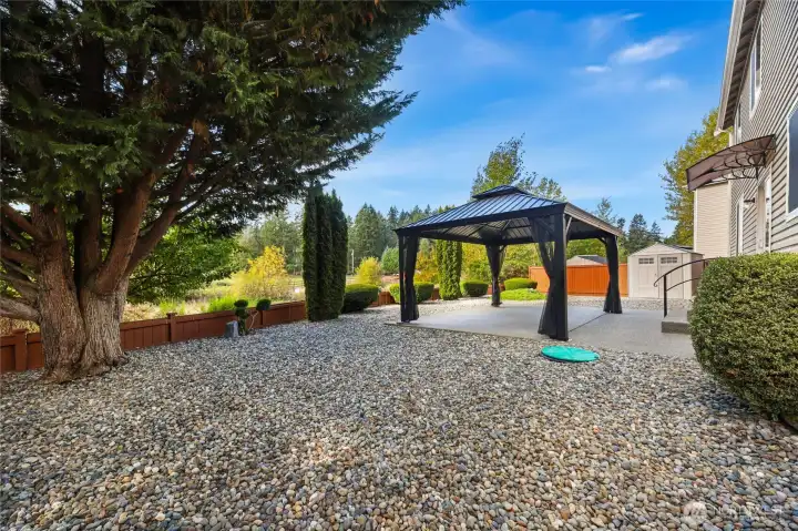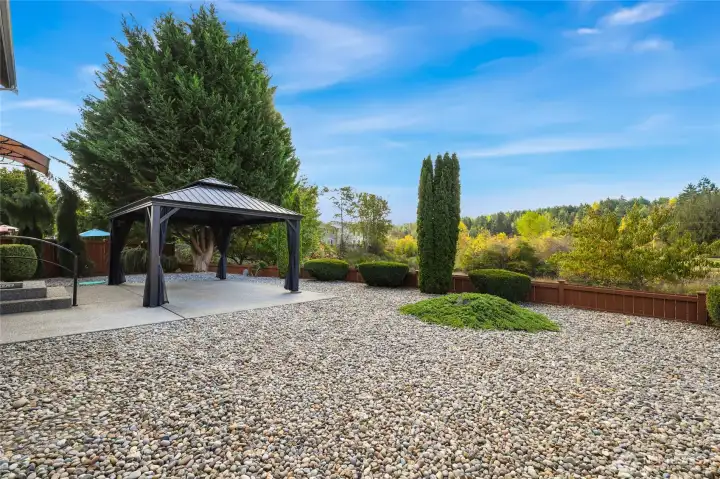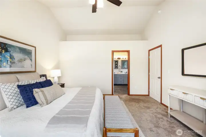 If Quiet and Serene are on your list- look no further than this beautiful 4 bedroom, 2.5 bath home in Frederickson! Backed up to trails and farmland, you'll enjoy your picturesque yard on summer nights- or rainy days with its oversized covered patio. Inside you'll find, soaring ceilings, plush carpets, a spacious kitchen and family room, and a functional circular floor plan that allows for easy flow. Your primary bedroom with vaulted ceilings has an ensuite bathroom that's been expertly designed and remodeled with enviable finishes and tile, extending into an amazing walk-in closet. The other bedrooms also have a remodeled bath to enjoy! With a 2 car garage & electrical already wired for your hot tub, this home is a gem and a must see!