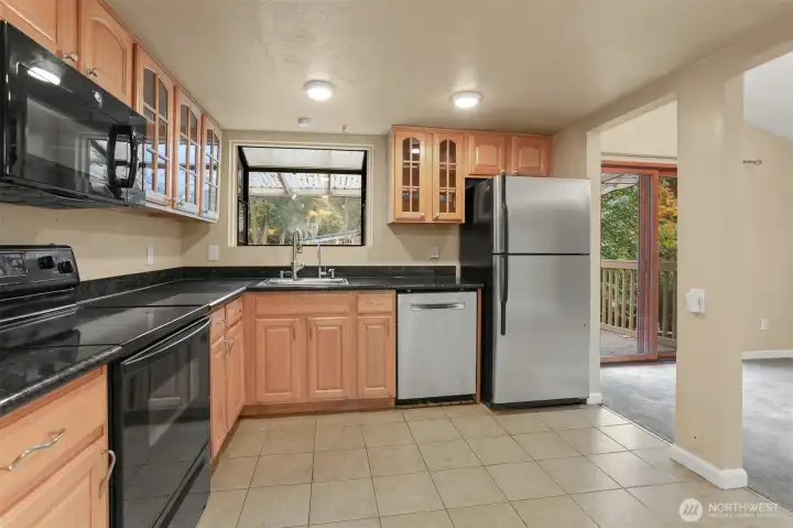 Here’s your chance to get into the top-rated Lake WA School District at a great value! This move-in ready 3bed,2.25 bath home in Bridle Trails feels extra spacious with soaring ceilings and a wall of windows that flood in natural light. All 3 beds on main floor, including primary suite with full bath. Open kitchen floorplan, blending living, dining & covered BBQ deck. The lower level is ideal for an office & rec room combo. Add on the extra bonus of a 9,180 sqft level lot that is your blank canvas. Welcome to your private play yard, garden space you always wanted, or fully fenced personal dog park. Easy access to downtown Kirkland & Bellevue. Close to trails & parks. Oversized 2-car garage, A/C & 3-car driveway.