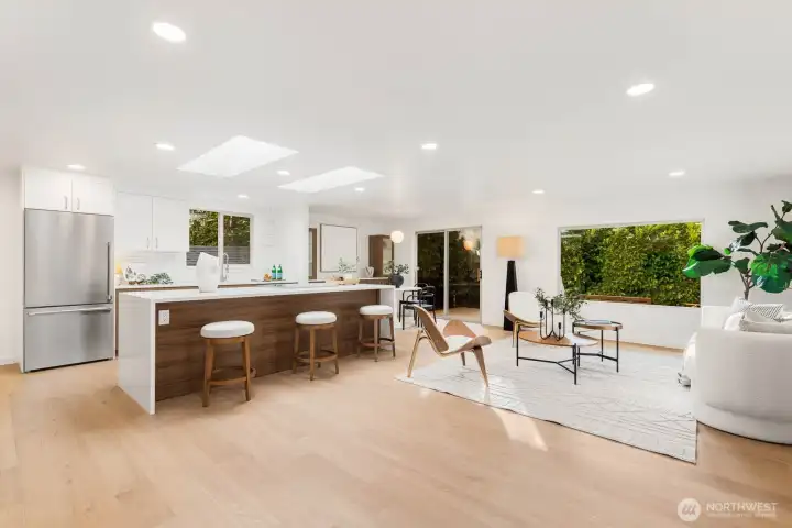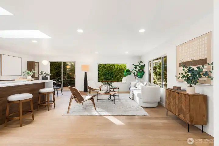 Stunning total remodel! This 1,250 sq. ft. single-level home showcases modern design, natural light, and exceptional craftsmanship. The open floor plan with two skylights fills the space with warmth. Enjoy a brand-new gourmet kitchen with custom cabinetry, quartz counters, and premium BEKO stainless appliances, including a 30” induction range. Spa-inspired baths, new roof, engineered flooring, cedar deck, and 4-car carport. Located in sought-after Hollyhills—own the land, low HOA, no age restrictions, close to parks, schools & shopping!