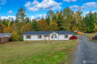 Enjoy the best of both worlds in this beautifully maintained Graham home with over half an acre of country charm just minutes from modern conveniences. Enjoy an updated kitchen with open layout, spacious living areas, & a thoughtful floor plan with the primary suite separate from other bedrooms. Bonus room & flex space offer versatility. Stay comfortable year-round with a wood stove & mini-split system. Outside features a covered deck perfect for entertaining, large fenced yard with garden space, gated entry, & on-site storage via shipping container. Roof is less than 5 years old. Conveniently located in the wonderful Greenview neighborhood with no HOA fees & minutes to Puyallup & JBLM!
