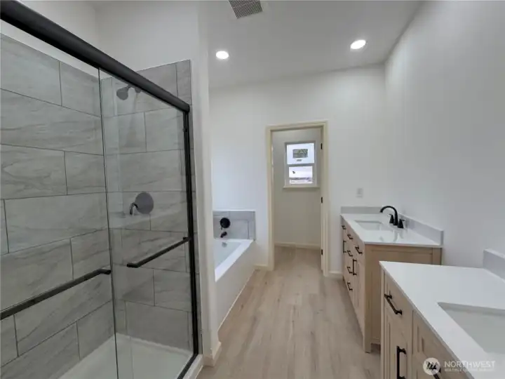 New Construction! This beautiful home features an open floor plan designed for modern living. The living room showcases a coffered ceiling and laminate flooring throughout. The kitchen includes a large island with quartz countertops, antiqued white cabinetry, stainless steel appliances, and a walk-in pantry! The primary suite includes a spacious walk-in closet, a sliding door with access to the exterior, and a luxurious bathroom with dual vanities, a separate tiled shower, and a soaking tub. Enjoy outdoor living with covered front and back patios and a fully landscaped front yard with sprinklers. The oversized, insulated 2-car garage features 10-foot ceilings, providing plenty of room for storage or workspace.