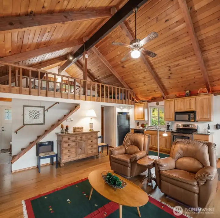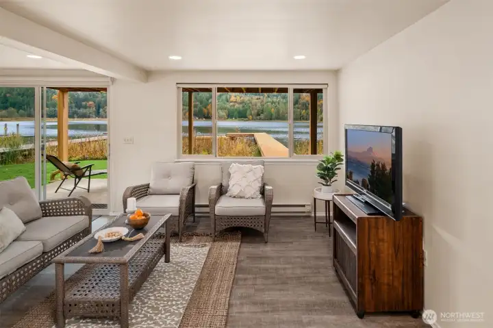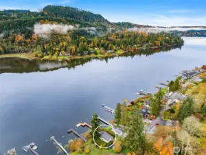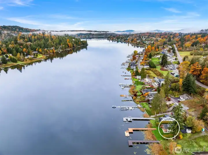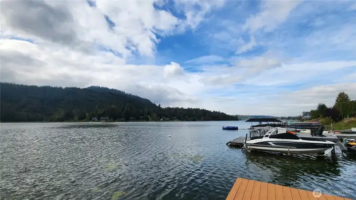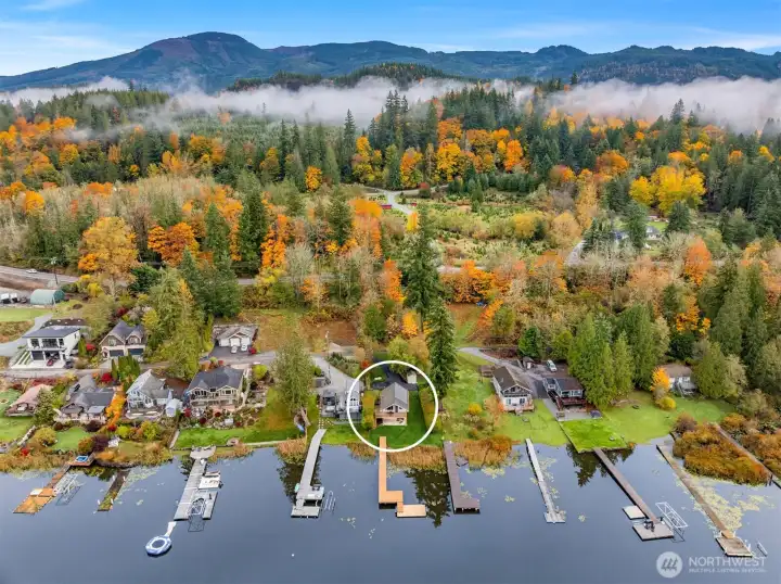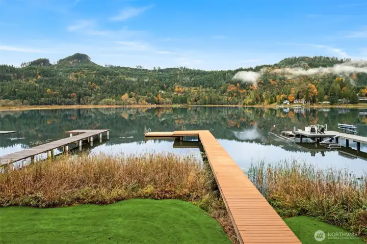 Escape to the Sunnyside of Big Lake with 60 ft of shoreline and a turn-key cabin ready for relaxation. Make lasting memories with all-day sunshine on this crystal-blue lake. Enjoy a beautiful dock for multiple boats. This large lot allows space to add a 3-car shop with a guest house above. After a day of swimming and boating, unwind on the spacious deck offering breathtaking sunsets with expansive lake and mountain views. Inside, the lower level is ideal for a game room where you can step out to the covered patio and lush, sprawling lawn. Enjoy vaulted ceilings, hardwood floors, loft, and walls of windows that invite the outdoors in. Just 8 min to amenities, 3 min to the golf course, 90 min to Seattle -your ideal lake getaway awaits!