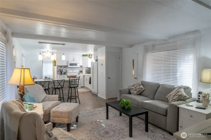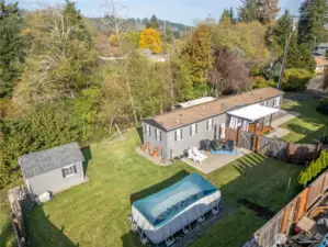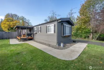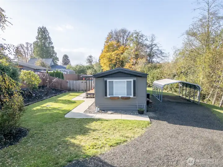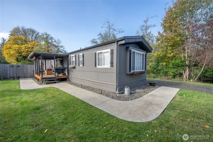 Beautifully updated 2-bedroom, 1¾-bath manufactured home on an oversized lot in a private, peaceful Montesano setting. Highlights include a spacious living room, kitchen with eating space, and a luxurious 4-piece primary bath with soaking tub and shower. Outside, enjoy the covered front porch, concrete back patio, and generous yard space. A shed and carport add convenience and functionality to this tranquil retreat.