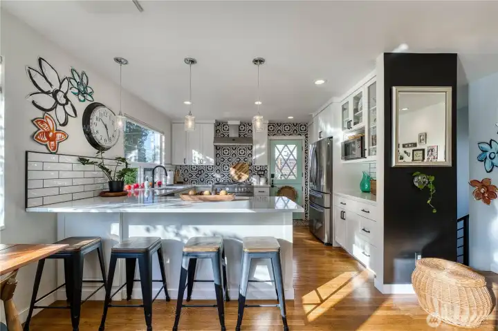 Keeping its 1950s charm intact, this Bothell beauty has been thoughtfully remodeled & expanded with modern finishes that elevate everyday living. Just a 20-minute walk to UW Bothell, Cascadia College & the Burke-Gilman Trail which can bring you to Seattle, it’s perfectly located for convenience & lifestyle. Corner lot with a 2019 roof, stylish finishes, & open-concept spaces that feel light, bright & move-in ready. Step outside to a fully fenced, beautifully landscaped yard designed for entertaining—plenty of room to gather, grill & relax. A rare find combining quality, location & charm in one stunning home, offering the perfect mix of function & style for today’s living. Turnkey, timeless & truly unforgettable!