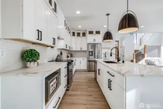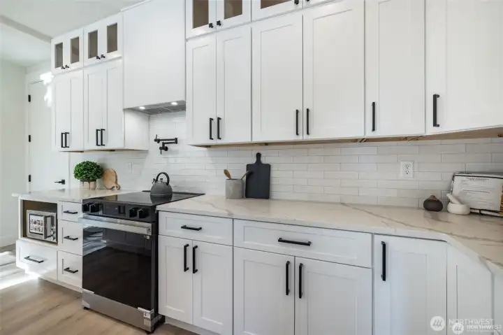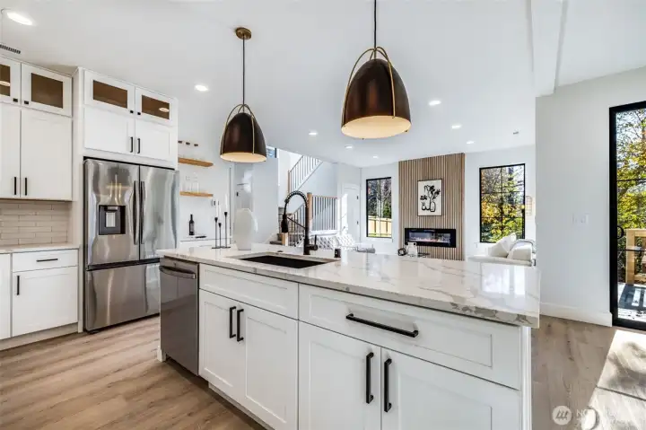 Better than new! Purchased brand-new in December 2024, this modern 4-bedroom, 2.5-bath home blends exceptional design, quality, and comfort in a quiet neighborhood close to great amenities. The open kitchen is a true showpiece with full-height cabinetry, quartz counters, tile backsplash, pot filler, and an oversized island perfect for entertaining. The vaulted entry and large windows fill the home with natural light, highlighting the stylish finishes throughout. The luxurious primary suite features a 5-piece bath and walk-in closet. Enjoy year-round outdoor living on the covered patio overlooking the fully fenced, landscaped yard. Tile-floored baths, A/C, and no HOA complete the package—modern living at its finest!