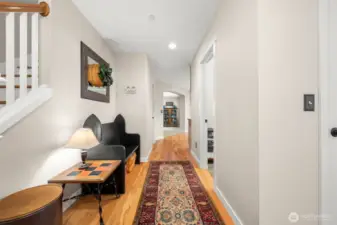 This stunning 2005-built Craftsman blends timeless architecture with modern refinement. Gleaming hardwood floors flow seamlessly across the main level and up the elegant staircase. The designer kitchen impresses with ceiling-height cabinetry, quartz countertops, under-cabinet lighting, and sleek stainless-steel appliances. A generous dining area fits an 8-foot table, complemented by a custom pantry with pull-outs and butcher-block counters. The family room’s bespoke built-ins and the primary suite’s cozy gas fireplace create warmth and sophistication. Major upgrades include a 90+ high-efficiency furnace and A/C. From its inviting covered front porch to its meticulous craftsmanship, this home exudes quality, comfort, and enduring charm.