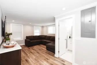 North Everett rambler blending charm, space, and updates in a prime location near the waterfront and Legion Golf Course! This 3-bed, 2-bath home features a beautifully renovated kitchen with quartz countertops, Kitchenaid appliances, window overlooks backyard and ample cabinet space.The remodeled bonus space includes a stylish bathroom with floor-to-ceiling tile, built-in entertainment center, and laundry space. Cozy brick wood burning fireplace, detached garage with alley access and large mostly fenced backyard offer endless opportunities. A great mix of original character and modern touches, close to parks, dining, and commuter access!