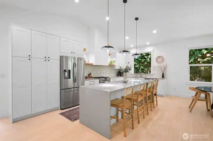 Welcome to Stonehaven in Semiahmoo, where thoughtful design meets easy, one-level living. Built in 2022, this modern craftsman features white oak flooring and a vaulted great room that blends kitchen, dining, and living spaces with timeless style. The kitchen offers quartz countertops, a spacious island, and beautiful finishes throughout. The primary suite is tucked away from the other two bedrooms and features a beautifully finished ensuite with walk-in shower and closet, plus a statement feature wall. Step outside to a private backyard bordered by evergreens and enjoy the covered patio. A quick drive brings you to the amenities of the renowned Resort Semiahmoo and Golf Course. This turnkey home, in a prime location, is ready for you!