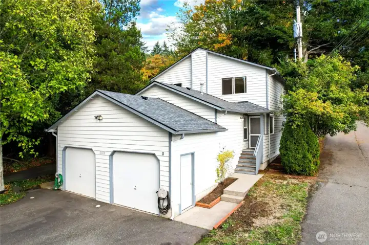 Discover this beautifully updated East Bremerton duplex, offering two spacious 2-bedroom, 1.5-bath units with tasteful, neutral finishes throughout. Each unit features a comfortable living room, dining area, and kitchen with a convenient half bath on the main level, plus two generous bedrooms and a full bath upstairs. Enjoy a one-car garage per unit, semi-private patios, and a small backyard with shade trees. Ideally located near shopping, amenities, and the naval base, this property is perfect for investors, multi-generational living, or as an opportunity to live in one unit while renting the other to offset your mortgage. Mortgage savings may be available for buyers of this listing.