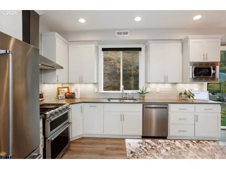 Live like you're on vacation every day! Stunning custom home overlooking the Columbia River. Views from all 3 levels, tall ceilings, abundant windows, granite, laminate, French doors, & designer touches throughout. Lower level features a private ADU w/kitchen, living room, full bath, bedroom, office, laundry, & private entrance: a successful Airbnb. Oversized primary suite, 3 view decks, & RV/boat-ready driveway. Hot tub, & easy 3-min access to I-5. Perfect balance of panoramic views & privacy.